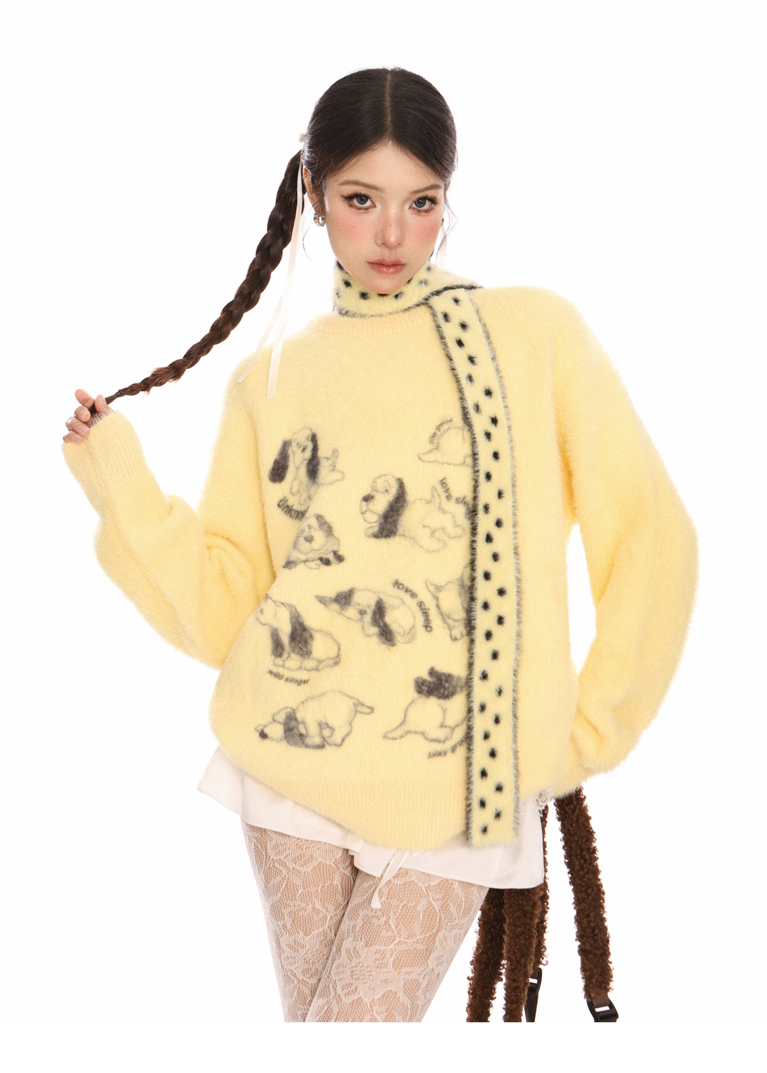 • VEYBE fun puppy Ma Hai Mao soft glutinous sweater female autumn and winter lazy style high end milk FUFU bib