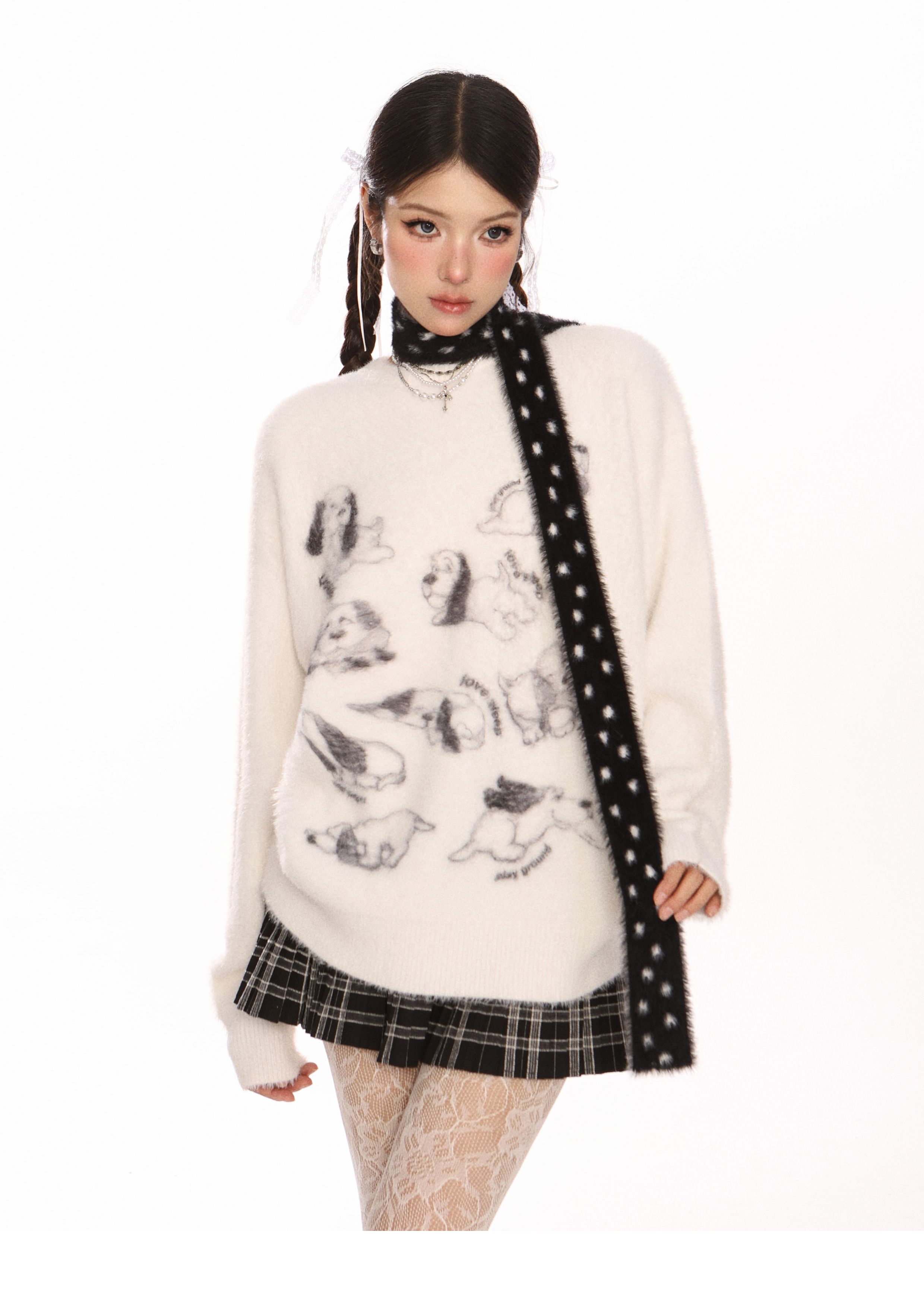 Biggold fun puppy Ma Hai Mao soft glutinous sweater female autumn and winter lazy style high end milk FUFU bib image 5