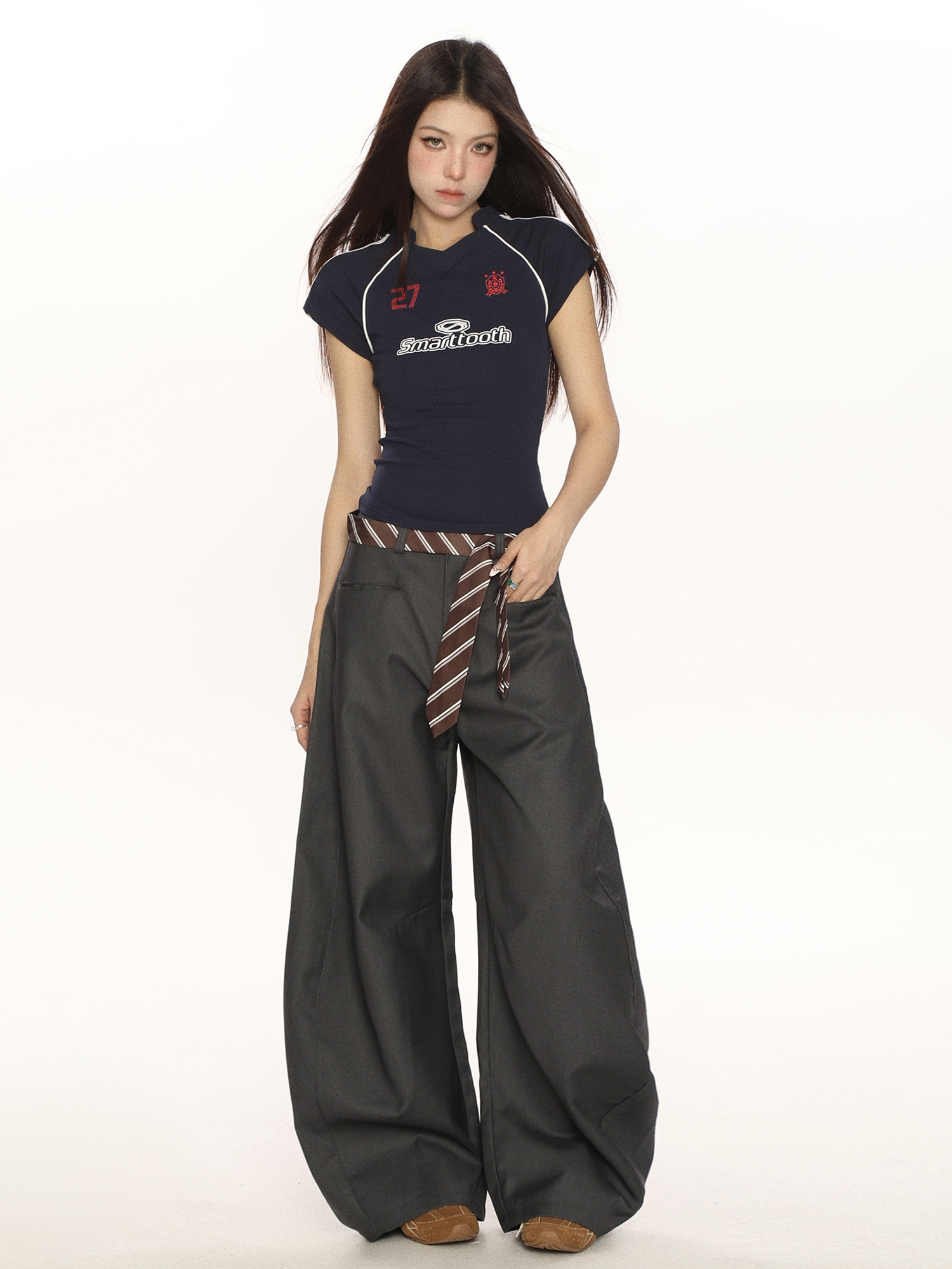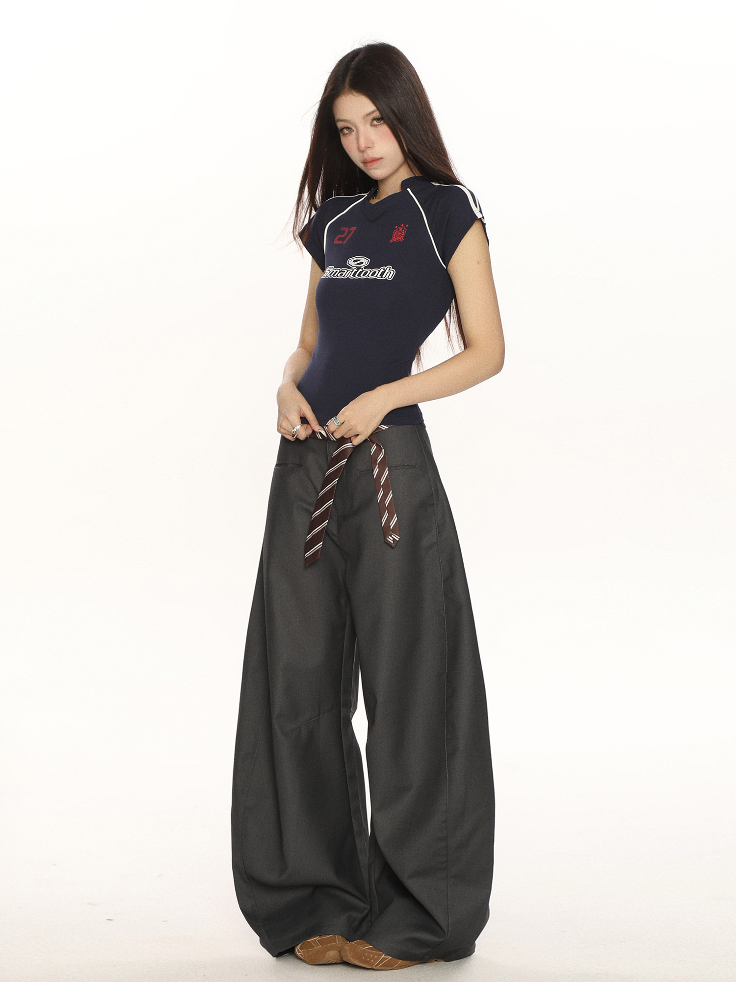 • VEYBE High end hanging floor pants niche designer commuting style slightly flared casual trousers women s wide leg zippered pants